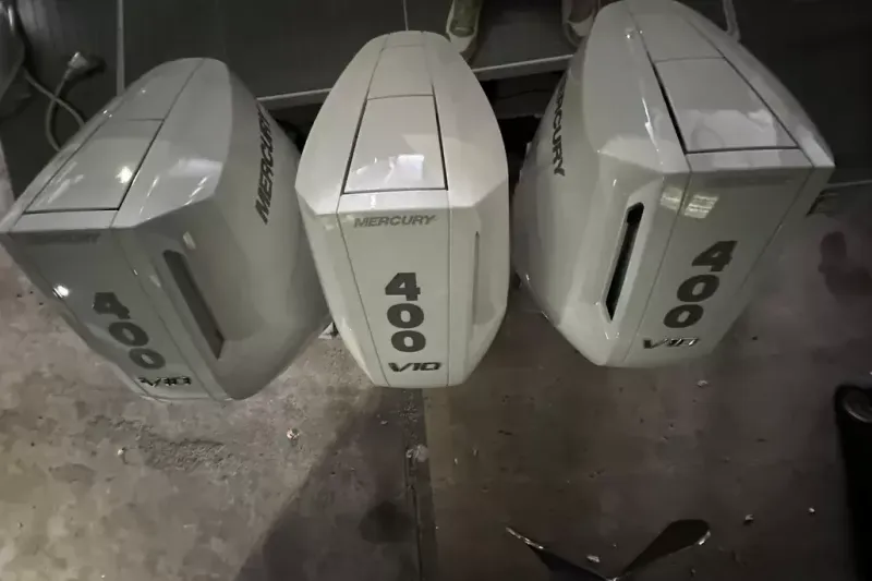 2024 Cruisers Yachts 38 GLS OB TURN KEY AND READY FOR A NEW HOME! Just arrived on trade, this 2024 Cruisers Yachts 38 GLS OB is a rare, turn-key opportunity to own one of the most versatile and entertainment focused 38-foot vessels on the water. Powered by triple Mercury V10 400hp white outboards with only 60 hours , with the highly desired Kingston grey hull band and a white hardtop, this Northeast vessel has been barn stored each winter and maintained to the highest standard. With its open-flow layout, innovative fold-down balcony to starboard, and premium finishes throughout, this 38 GLS OB truly delivers luxury, performance, and fun in one exceptional package. Call your trusted Cruisers Yachts dealer today for further details and to arrange a viewing! *We work with trade-ins of all sizes, makes, and model, MERCURY V10 WHITE 400 – 60hrs MANUFACTURER OPTIONS HULL – WHITE W/ KINGSTON GRAY PLANK COCKPIT SEATING – DOLPHIN GRAY (ULTRALEATHER) INTERIOR WOOD – DARK EBONY OAK TRIP-MERC V10 W JOYSTICK WHITE 400HP ICEMAKER – HELM SEAT 110V GRILL – COCKPIT 120V SEADEK-BOW COCKPIT – GRAY Y1 UNDERWATER LIGHTING BOW THRUSTER PURCHASE & INSTALL W/JYSTK STBD ANCHOR WASHDOWN SYSTEM SQ REVERSO ENGINE FLUSH SYSTEM, OB V10 NO SEAKEEPER STD BATTERIES- ABSORBED GLASS MAT / AGM STANDARDS – US GENERATOR 6KW DIESEL W/ SS 120V 24” TV – MID BERTH, US – DARK EBONY OAK CENTRAL VACUUM SYSTEM 120V MACERATOR W/ OVERBOARD DISCHARGE RADAR, MERC W WHITE HARDTOP RADIO, VHF, SIMRAD , US RETRACTABLE COCKPIT SHADE – WHITE HARDTOP – WHITE W/ DOLPHIN GRAY CKPT SEATS INTERIOR COLOR -GRAY