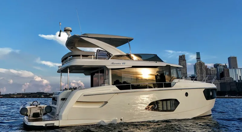 Elegant Design: The Absolute 48 Navetta features a sleek and modern exterior combined with a sophisticated, comfortable interior, providing a luxurious onboard experience.