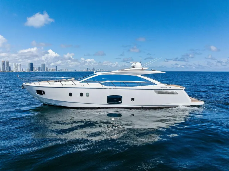 We proudly present this highly customized 64' Absolute! She was built by an extremely knowledge able and detail-oriented owner who has made very well-planned upgrades to the vessel for cruising pleasure. You will not find a more user friendly, accessible boat. The 64' boasts a fantastic ride and 360-degree visibility at the helm. She is laid out with upper and lower salons featuring 2 staterooms en suite, with the traditional 3rd stateroom having a customized open layout equipped with an office and Sofa that could be used as an additional sleeping area also en suite. The lower level features an addition of finished wood flooring. IPS drives bring fuel efficiency and can be operated by a joystick at helm. A perfect yacht for family enjoyment and extended cruising. She recently had a bottom paint job, and both IPS transmissions were fully rebuilt.