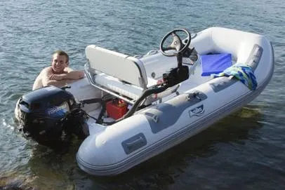 Sleek, Euro-style tubes give them a stylish edge over other RIB's. A deep "V" fiberglass hull delivers superior performance while a built-in bow locker provides both a seat and a place for gear. If you want to take a step above the norm in a hard-bottomed tender, step up to an Achilles HB-DX RIB. Like every Achilles boat they are made with our own Achilles CSM fabric so they can handle the burning sun of the tropics or cold northern waters without fading or deteriorating. Choose a rigid-hulled inflatable that gives you a little extra. Choose an Achilles HB-DX.