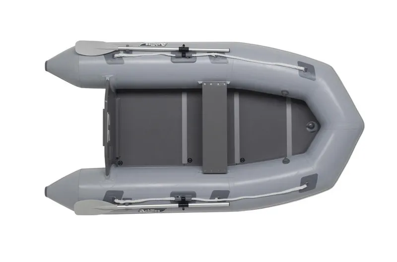 Achilles hypalon reinforced fabric, air keel, wood floorboards, fold down locking oar system, full length rub strake, removable wood seat, towing bridle D-rings, protective transom plate, life lines, bailer valve, foot pump, carry bag, and maintenance kit