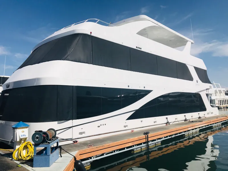 Adonis is a stunning 75' x 22' luxury houseboat built by Adonia Yachts in 2018, featuring a custom reverse floorplan, three outdoor living levels, and accommodations for up to 30 adults. This vessel has been extensively upgraded and is supported by an exceptionally involved ownership group known for proactive maintenance and continuous improvements.