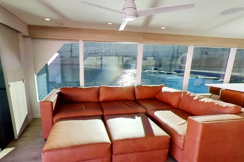 Custom sofa on top deck and additional seating areas throughout