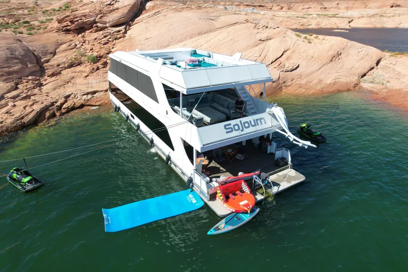 Sojourn is a 2021 Adonia Yachts custom luxury houseboat designed for comfort, performance, and entertaining. With an 8-bedroom layout plus two kid's cuddies, expansive outdoor living areas, and top-tier mechanical systems, this vessel represents the pinnacle of modern houseboat ownership on Lake Powell.