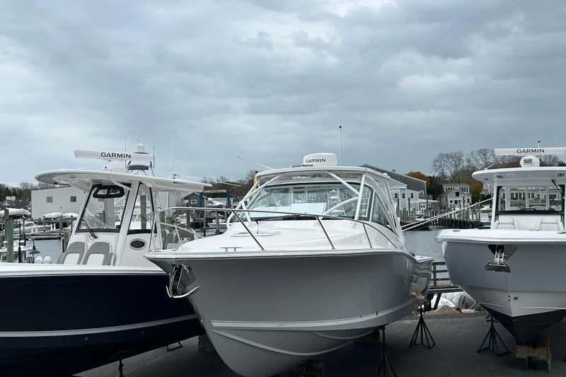 Debuting in 2021, the 30 Express will offer the ultimate in hardcore fishing amenities in a compact express package. Serious anglers will appreciate its offshore ability, exceptional handling in rough seas, and fuel economy. Featuring a modern helm area with forward facing seating for three, mezzanine style seating aft, large in-deck macerated fishboxes, transom livewell, tackle center, and a standard transom door, this express delivers in a big way. With a full galley, a stand-up head, and an A-bunk, the 30 will overnight comfortably.