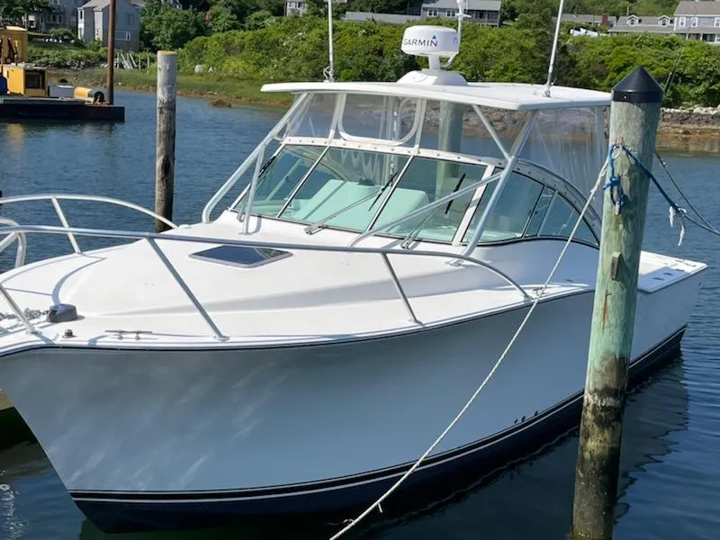 Highly sought after model with preferred 380 Hp 5.9L Cummins QSB's. Full 1000 hr service currently underway. Vessel has been stored and serviced with very reputable local facility. Equipped with factory hardtop, recently updated full enclosure, updated Garmin touchscreen multi function system, ZF electronic engine controls, generator, air, and heat. Spacious cockpit w/ transom door, tackle center with sink/ tackle storage, and cooler to port side. Center helm layout with port side bench and starboard side L shaped seating. Electric windlass on the bow, Nicely appointed cabin with teak and holly sole, enclosed head, modest galley with convection/microwave oven, sink, and below counter fridge. Large V-berth has flip-up backrests providing 2 additional bunks. She's fully commissioned and ready to go for the 2025 season. Full maintenance records incl. fluid samples available for review.