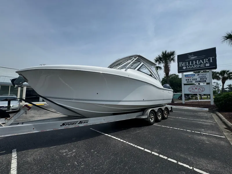 The 31DC features reliable and efficient Yamaha outboard power with a choice of 300 or 350 horsepower. The bow, helm, and cockpit seating will offer plenty of comfortable space for family and friends. Her cockpit is uncluttered and well laid out for multiple purposes.