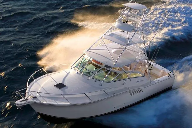 Built to be a flat-out fishing machine that is nimble enough to be managed by a crew of two, the 36 Express comes with an exhaustive list of standard high-quality, full-on fishing features. The centerline helm pod with 360-degree visibility and deep gunwales make it perfect for the serious tournament angler or charter captain. The first-class living quarters boast numerous luxury upgrades and a well-appointed galley. The intelligent cabin configuration allows plenty of sleeping and entertaining options that make the 36 livable enough to spend a week heading for the next hot bite or just cruising. Proven to raise fish and Carolina tough, the 36 Express has already established itself as one of the most sought-after sportfishing boats on the water.