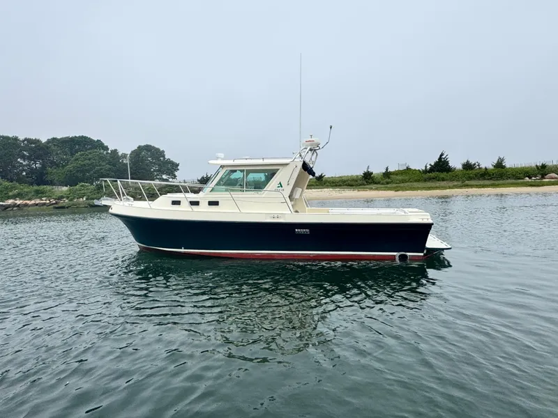 This well-maintained 2001 Albin 28 Tournament Express is a classic blend of rugged downeast styling and dependable performance. Powered by a reliable Yanmar 6LP 315 HP diesel engine with 985 hours, she offers excellent fuel efficiency and a comfortable cruise in the mid-20 knot range. Built for both fishing and cruising, this versatile vessel features a roomy cockpit, full hardtop with enclosure, and a thoughtfully designed cabin with a V-berth, enclosed head with shower, and galley.