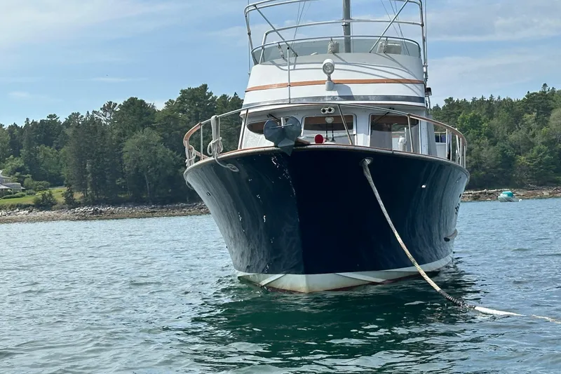 WEJON is a handsome 1988 48' Albin North Sea Trawler, built to high standards in Taiwan. WEJON is Hull #9 and is believed the only one with the galley down. With her Ray Hunt designed "V" bottom Airex cored hull, recent new Caterpillar engines and Fischer genset, she has increased dependability. Her teak interior is very attractive and her spacious two cabin layout with two heads makes her an ideal "two couples" or family cruising vessel.