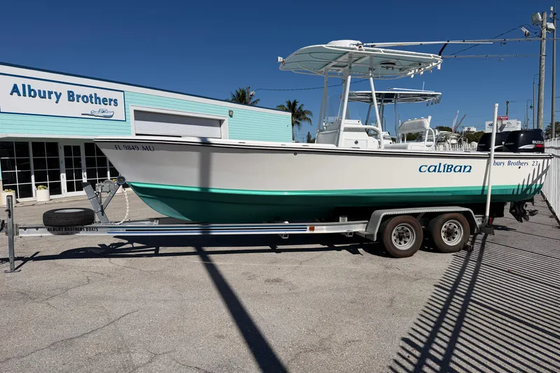 This Albury Brothers 23 has been well maintained by her original owners since 2005. The twin 140 Suzuki engines with 225 hours were surveyed on 2/23/26 and given a clean bill of health. The tech said "These are the best, oldest 140's I've ever seen, someone took great care of these". She is outfitted with modern Garmin 16" MFD, Dome Radar, and Garmin Autopilot. This boat has the Original Albury Brothers 23 interior with a casting platform forward, and a separate splash-well aft, along with a 30 gal Live-well Leaning Post. She is outfitted with a Birdsall Canvas Top that is fitted with Lighting, VHF Antenna, Anchor Light, Dome Radar, and a pair of Outriggers. Pipework is powder coated Sky White and upholstery is in good shape. This boat is packaged with a Loadmaster Dual Axel trailer. She is bottom painted and ready for her next adventure !