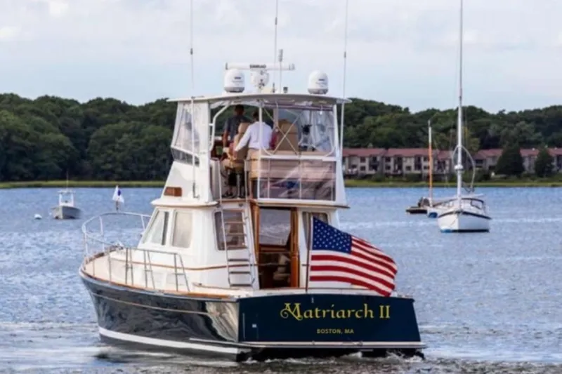 Introducing Matriarch - A stunning and magnificently crafted Alden 49 Flybridge Express Cruiser. Commissioned in 2005, she can accommodate four guests, and two gorgeously appointed cabins with the ability for two more in the salon.