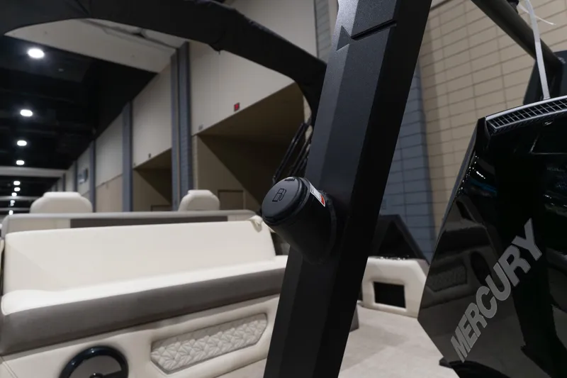 This M23L features a matte black exterior, accented with gunmetal trim, and complemented by a Phantom Gray interior and flooring for a sleek, modern appearance. Power comes from a Mercury 250XL Verado with power-assist steering, delivering quiet, responsive, and effortless handling.