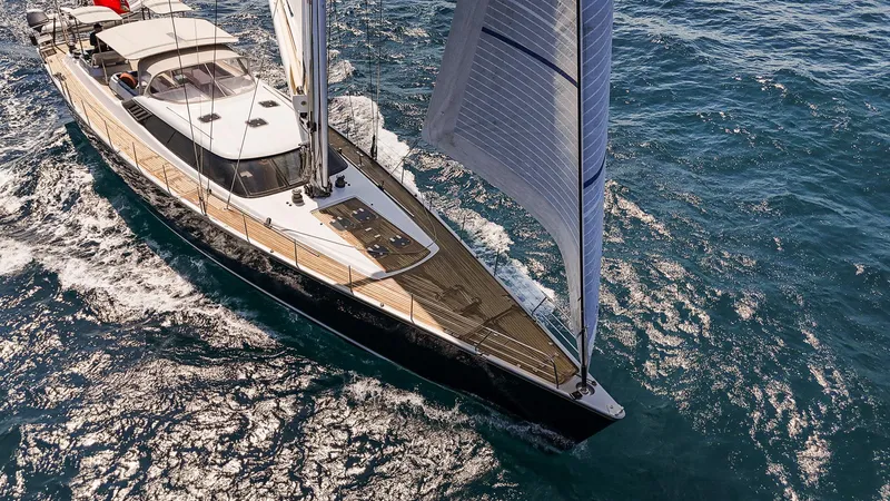 On initial review, her designer determined that the description was for an elegant, 125’ sailing yacht. Over the next eight years, the envelope was reduced in size without sacrifice of any key features, by a number of ingenious design and engineering innovations and dual-purpose applicability in all aspects of her layout, sail handling systems and engineering. The quality of construction from Alia Yachts is of the highest order in all respects.