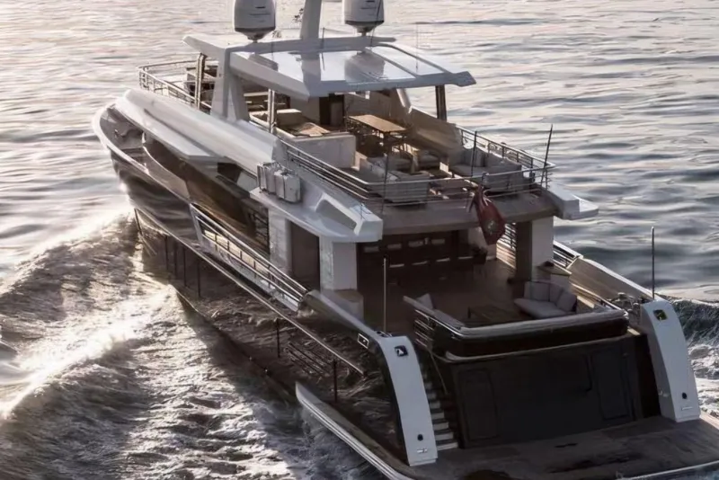 Design & Finish: Premium teak decking flows into an integrated aft patio, featuring triangular shading systems and cockpit enclosures for enjoyment in any weather.