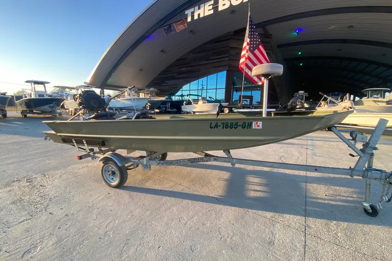Ideal for duck hunting or fishing shallow ponds, this 14x48 mud boat is a solid, well-equipped setup that's ready to hit the water.