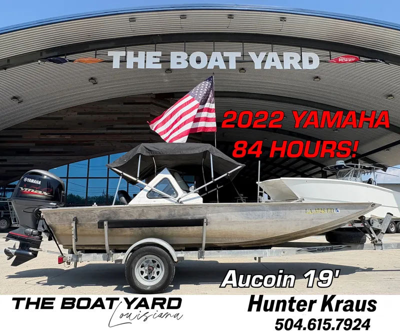Contact Rob for more info! (504) 669-14702001 Aucoin 19’ – 2022 Yamaha 115HP (84 Hours!) – Clean, Reliable, and Ready to Go!FINANCING AVAILABLE WARRANTY AVAILABLEThis 2001 Aucoin 19’ delivers that classic Louisiana skiff style—just like a Skully—with upgraded modern power! Powered by a 2022 Yamaha 115HP Four Stroke with only 84 hours, this setup runs strong, sips fuel, and is ready for inshore adventures or a relaxed day on the water.?? Specs & EquipmentEngine: 2022 Yamaha 115HP (Only 84 Hours!)Length: 19’Fuel Capacity: 26 GallonsHull: Aluminum Skiff Style (similar to Skully)Trailer: Included w/ Spare Tire?? Features & ComfortBimini Top for shade on long daysBluetooth Sound SystemSpacious Deck Layout – perfect for fishing or cruisingDurable Construction – lightweight and easy to tow?? Ready for the water and needs nothing!Reliable, simple, and efficient – an excellent setup for both fishing and family trips.?? Located in Louisiana – Financing & Trade-Ins Available!Contact Rob for more info! (504) 669-1470