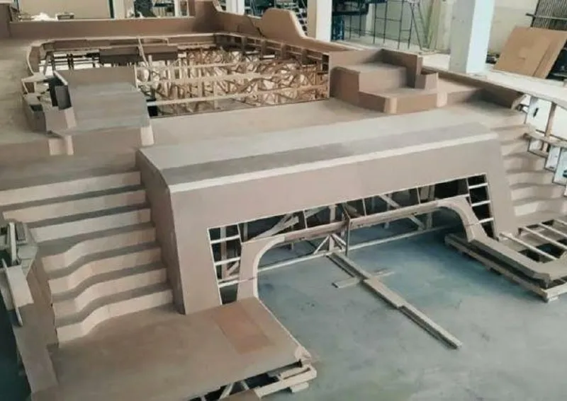- All furniture is made of light-weight composite materials covered with real-wood veneer