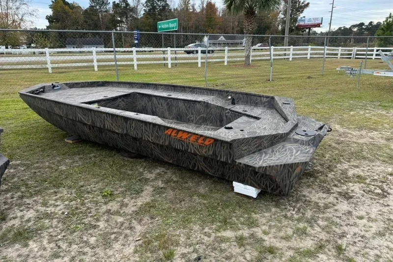 This 2026 Alweld 1756 Invader Jon boat is powered with a Yamaha 40HP tiller. The new Invader series is built for serious duck hunting. It's sleek and rugged construction will ensure you get to your favorite spots fast and in one piece. The Invader series boats come standard with rear pod seating with storage underneath and a trolling motor bracket with plug. Come see this boat at our Morehead City, NC location or call 252-773-0099 for more information.