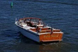 - Full mahogany package (Mahogany stern rail, flag pole, hull liners, seat bases, bottle storage compartment, cabinetry, and full-width swim platform)