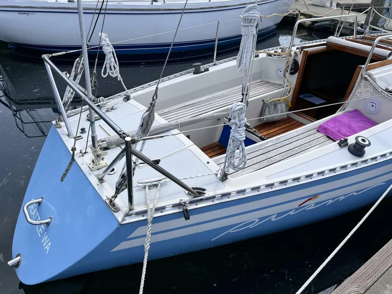 Built in the Ott yard in Germany and sold under Bianca Yachts, the Aphrodite 101 is known for its sleek design, tall rig and well thought out winch positioning which makes for an easy shorthandling. This boat is one of ten boats brought into Seattle in the late seventies to start a one design fleet. There are still a number of 101's located in the Pacific Northwest. The current owner is the second owner and has owned "Prism" for 38 years. In 2005 the boat went through a total refit. Seaview West Boatyard did a bottom peel, re-glassed the bottom with vinylester resin and epoxy barrier coat. Bottom paint is Petit Vivid (2 gal white to 1 qt white) Top sides were painted and non-skid applied with Awl Grip "Graystone." The hull was painted with Awl Grip "Sky Blue" Thru-hull gate halves were replaced with ball valves. New teak cockpit sears were installed. The existing engine was replaced with a new 1GM Yanmar 10 and a new Gori folding prop was installed. Last haul-out 8/17/2023 Seaview West Boatyard - New Bottom Paint, 2 coats petit Vivid, new anodes, Prop treated with Barnacle Barrier Zinc Coating