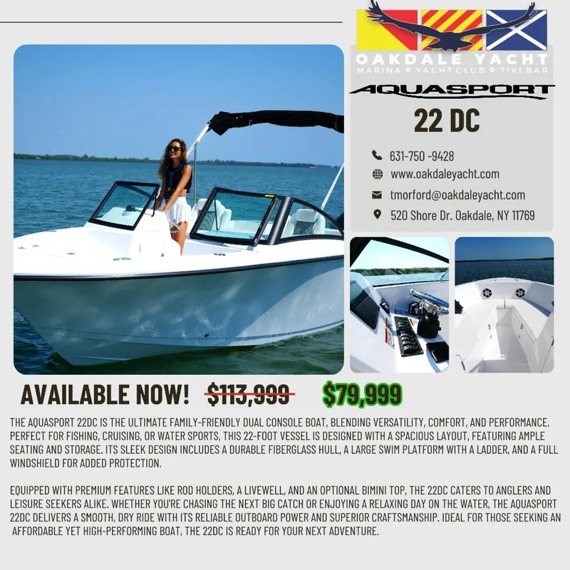 Whether you're heading out for a day of fishing, cruising local waterways, or towing water toys, the Aquasport 22 Dual Console is built to deliver exceptional experiences.