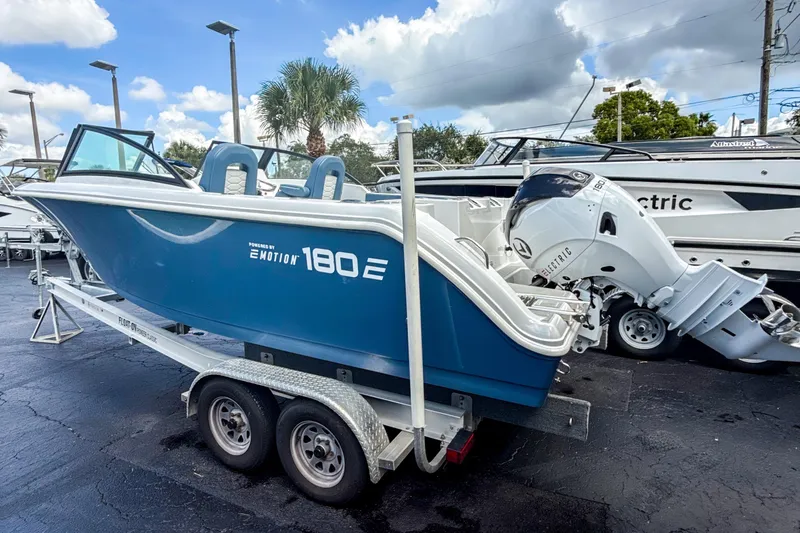 Powered by a cutting-edge Vision Marine Technologies Emotion 180e electric outboard engine, it delivers an impressive 180 horsepower, offering a smooth and efficient ride.