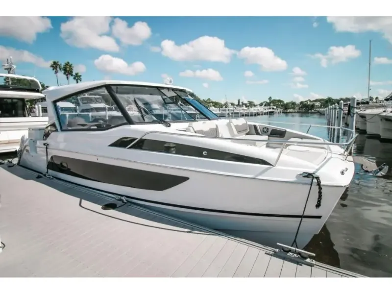 The Aquila 36 Sport has a totally innovative approach in the nautical world. The Power Catamaran can please a large group and all their water toys with its capacity or provide complete privacy for two couples on an adventure to new destinations. With a full windshield and hardtop, the Aquila 36 Sport can handle most conditions. Controls are strategically positioned to give the operator complete control of the vessel, and the Mercury Joystick Piloting intuitively simplifies docking and close quarters maneuvers.