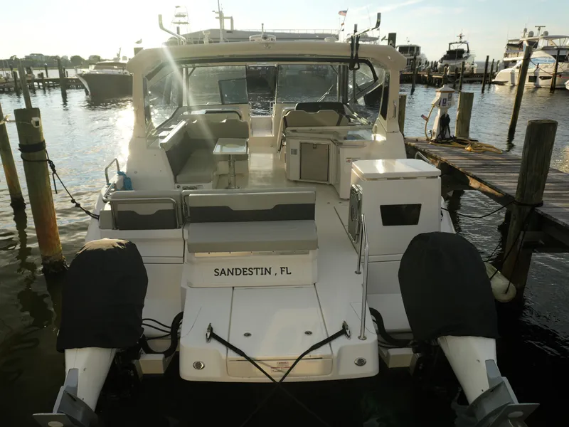 Built for all-day fun, the vessel includes essential features such as a convenient swim platform and ladder for easy water access, a protective bimini or hardtop (model-dependent) for shade and comfort, integrated sound system to enhance your time on the water, practical galley or refreshment station options for onboard entertaining.