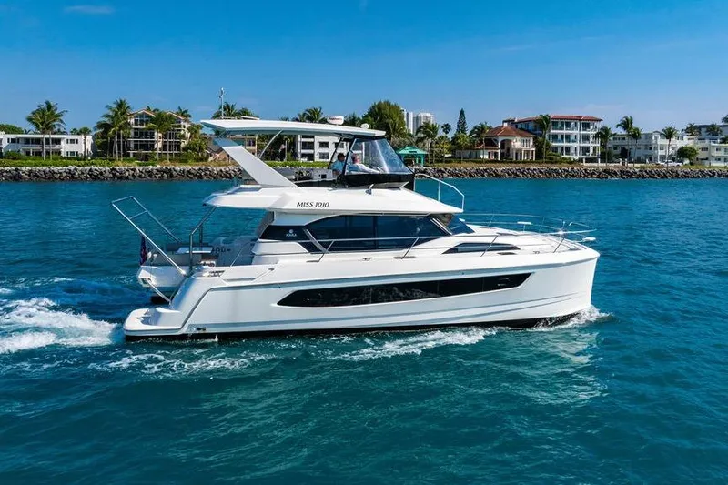 Spacious Layout: The Aquila 44 features an open and airy deck design with ample seating and lounging areas, making it ideal for entertaining guests or enjoying family outings. 2. Performance: Equipped with twin engines, the yacht delivers impressive speed and stability, ensuring a smooth ride even in choppy waters. 3. Innovative Design: The yacht boasts a sleek, contemporary aesthetic with large windows and a flybridge option, enhancing both visibility and outdoor enjoyment. 4. Comfortable Interiors: The cabins are well-appointed with modern amenities, providing a luxurious and cozy environment for overnight stays. 5. Fuel Efficiency: Thanks to its advanced hull design and efficient engines, the Aquila 44 offers good fuel economy for its size and power. 6. Easy Handling: Features like joystick docking and advanced navigation systems make maneuvering the yacht straightforward, even for less experienced operators.