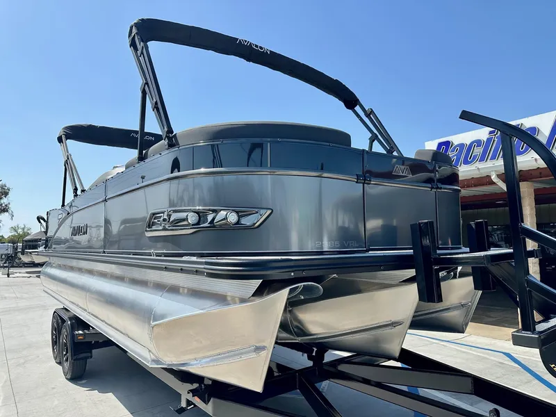 2025 Avalon 23' Catalina platinum Versatile Rear lounge in Charcoal and Black. Powered with a Mercury 200HP! Options include: Catalina Platinum Edition with Ultrafine Touch Vinyl Upgrade, Admiral High Back Reclining Chair, Mooring Cover, Garmin 72SV, SST Pull up Cleats, Blue Ice Lighting Package, Deco Docklights, SST Vent Covers for Seat Cladding, Platinum Edition Special Badging, 25 Waveglider, Blackout Package, Ultrafine Vinyl, High Performance sound System with Fusion RA-670, (6) Fusion XS lit Speakers with Grills, Fusion 6 Channel Amp, Fusion 10' Subwoofer, USB Audio Input and Charge, Electric power Assist, Slate Teak Flooring, Furniture Series Upgrade, Washdown System, Double Bimini Tops, and In-Tube Ski Storage Locker. * Price shown is Before Freight, Prep, Tax, DMV and other fees. ** Custom Trailer is $8,000 additional. WE WANT YOUR BOAT!!!Call us or stop by 7 days a week for more information at 559-432-2277
