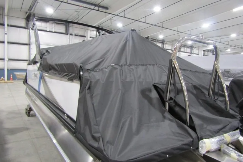 Options: Blue ice pkg, blackout pkg, furniture upgrade, floor matting, privacy station, lillipad ladder, solid side keels, sport arch bimini, stainless aft rail, platinum pkg, tritoon pkg, power steering