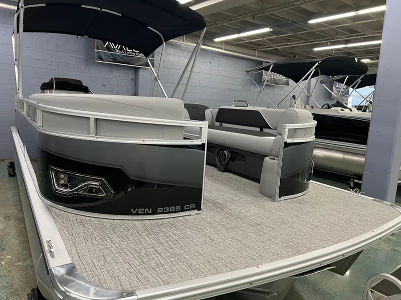, When it comes value, Venture 85 from our Signature Collection is the best bargain in the industry. With clean, traditional design and rigid structure, you can expect years of durable use and family fun. This simple, yet elegant pontoon is a must have for conscientious buyers on a budget, who want the care and precision of Avalon construction, and an extremely affordable price. This 2026 Avalon Venture 2385 CR is priced with a Mercury 150 four stroke. Aluminum trailer is available but priced separately.504-737-2722