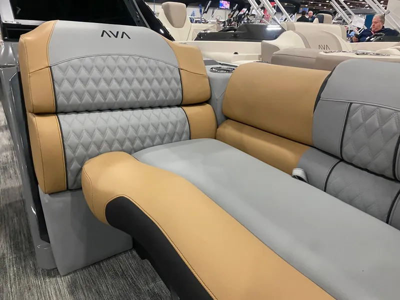 Self-Leveling Arms & Color-Matched Accents (Where Applicable, Port Chair Will be an Admiral High Back Reclining Chair Without Bolster), Chair Adjustment Slider, Front, Back, Rotate, Greywood Rectangle Thermoform Table, Leon Seat Vinyl, Suspension Seating, Lounge Arms with Storage (Based on Floorplans), Decorative Brushed Bronze or Charcoal Seat Frame Cladding, Lifetime Aluminum Seat Frames with Flow-Through Ventilaton, (1) Dual USB Charging Port, Stainless Steel Cup Holders, Moveable Cup Holders with Stainless Cup Holders (2), Riptide Full Deck Flooring, Deco 3 External Multi Panel Retro Walls, Interior Composite Wall Panels, Large Smoked Chrome Hi-Flex Logos, Quick Release Fender Holders w/Straps, Gate with SST EZ Latch & Lift-n-Lay Hinge, Heavy Duty Square Frame Bimini Frame & Top, Waveglider Triple 25" Pontoons with High Performance Lifting Fins & Aluminum