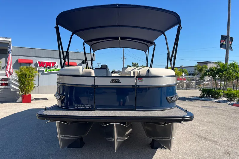 The all new 2026 Catalina Entertainer is like having your own all inclusive resort on the water. This pontoon island has its own fiberglass bistro bar with four bar stools and a Bluetooth stereo to create your favorite ambiance while entertaining. There are two front lounge arms and two rear cabana lounges which are your sunbathing areas, and for swimming there is a large rear swimming platform with two ladders. All of these features plus Deco style walls and luxurious seating will impress anyone who joins you, Loaded with options, full Tri toon with wave glider package. Seat covers, Mooring cover, Garmin 72 CV GPS, Booth Bar seating, Soft spoke steering wheel, In tube ski locker, Floor matting, lights under the rub rail, Blue Ice lighting package, Stereo Remote, Saltwater package, Luna Sand flooring, Blackout package, Ultrafine Cream White vinyl, Ultra fine Buckskin base 2 vinyl, with Navy Blue accent, mood lighting, Roman bronze seat cladding, lights under rub rail, Bolted deck, 1 High Back Admirals reclining chair with bolster, booth bar seating, Double Bimini Top, Blue Ice Lighting package, Waveglider 27" pontoon package, Fully welded HPP Fins, Blackout package, 4 pull up cleats, Fusion High performance Sound System,1 Lilly pad ladder rear entry, saltwater package, Furniture series upgrade, side keels, solid bottom keels, Deco dock lights, Trash can in lounge arm, outboard ski tow bar, Ultra fine vinyl, 4 quick release buoy holders, lighted cup holders, trash can in lounge arm, rectangular table, Metal jacket coating, 100 Gallon gas tank, Bolted deck, Catalina Platinum Package. Mercury Digital Controls, Powered by a 400hp Mercury V-10 Verado motor with stainless steel prop. Boat comes with Ropes, anchor, porta pottie, Coast guard pkg., Local delivery, Dual batteries, battery switch. Bottom paint, Sales tax, and trailer are extra