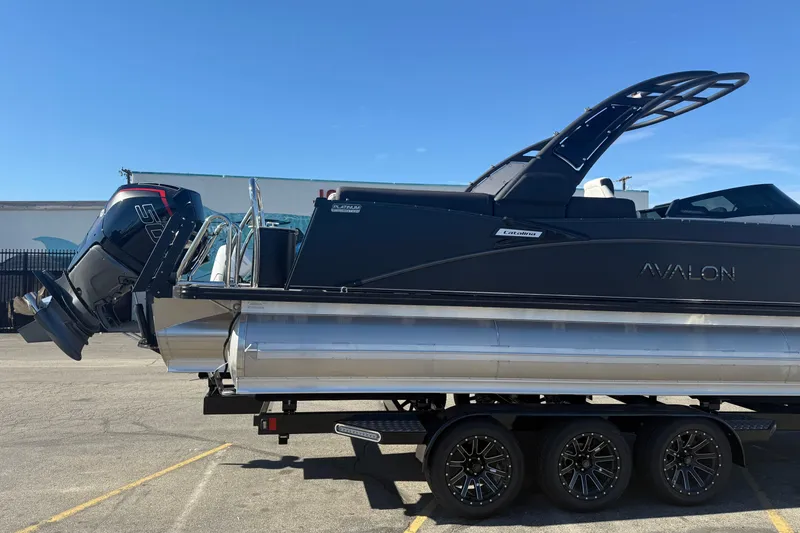 Brand New Arrival! All new 2026 Avalon 2785 Catalina Platinum QL with a 500R Mercury Racing Motor. Boat is matte black with a black EX-P Tower. 27 waveglider package, rough water package, saltwater package, blackout package, dual high back chairs, Simrad NSX9, high performance sound package, premium dual battery management, battery charger, Michigan steering wheel, silverwood flooring, washdown, 25" transom, 100 gallon fuel tank, metal jacket coating, in-floor storage, dual biminis. ***** Trailer, Tax and dealer fees not included*****.