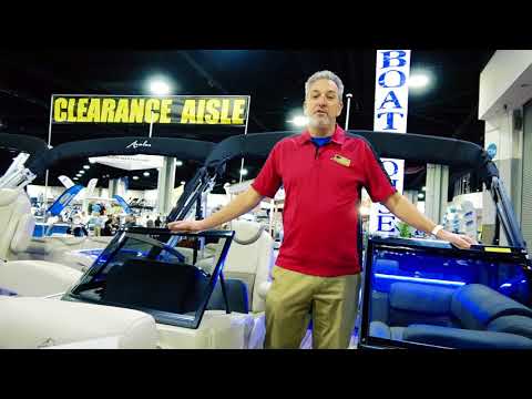 The Catalina Platinum Windshield pontoon boat features a stylishly designed integrated full-width windshield that keeps the wind out of your eyes as you fly down the waterway on the included 25" Waveglider Triple high performance pontoon system. Also great for chilly mornings, this model has high end features including a stainless steel refrigerator with freezer, an integrated sink, and flush mount GPS. Get ski boat performance and Pontoon comfort in our most popular windshield model.