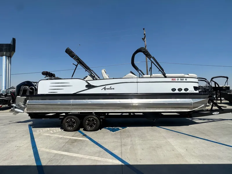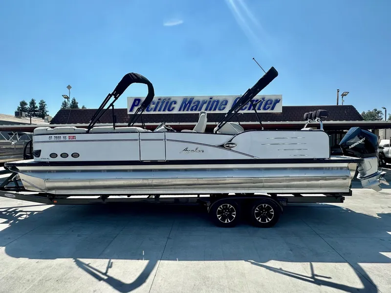 2018 Avalon 27' Catalina Platinum Rear Lounge. In White Frost with Silver interior. Powered with a Mercury 300HP Verado! Only 108 Hours on this motor!! Options include: Double Bimini Tops, Ski Storage Locker, Ski Tow Bar, Blackout Package, Tandem Axle Trailer, Stainless Prop, Upgraded Sound System, Dual Battery with switch. * Price shown is Before tax, DMV and other fees. WE WANT YOUR BOAT!!!Call us or stop by 7 days a week for more information at 559-432-2277