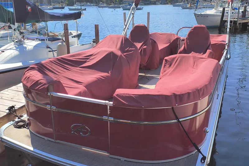 This 2022 Avalon Pontoon is here in our yard and currently sitting in a slip that can be transferred to the new owners. She's been serviced and maintained right here at Fay's Boat Yard since new.