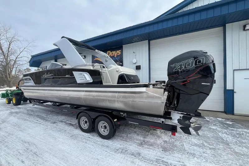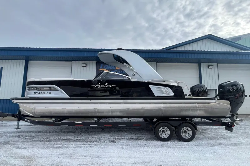 Absolutely immaculate One owner 2018 Avalon 2785 Excalibur LTD w/ twin Mercury 400R's with ONLY 46.5 hours! 90% of the hours are under 4000rpm! This tritoon comes with the Phoenix trailer! This twin Engine tritoon has virtually every option it could have! Touch screen dash, Infinitely stereo system, ski locker, RGB lighting package, Dual SS props, table, mooring cover, Windshield, and so much more! The interior is absolutely mint. Comopare at over $240,000, you wont be disappointed with this Avalon!
