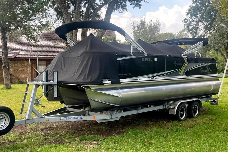 Introducing the stunning 2021 Avalon LSZ 2485, a remarkable pontoon boat that promises unforgettable adventures on the water. With an impressive overall length of 24 feet, this vessel combines elegance and functionality, making it perfect for leisurely cruises or lively gatherings with friends and family. Crafted from durable fiberglass, the hull ensures stability and performance, while the powerful 200 hp Suzuki 4-stroke E.F.I. outboard engine delivers a thrilling ride. The 3-blade propeller enhances maneuverability, allowing for smooth navigation in various water conditions. This used pontoon boat is designed for comfort and enjoyment, providing ample space for relaxation and entertainment. Whether you're fishing, sunbathing, or simply enjoying the scenic views, the Avalon LSZ 2485 is your gateway to creating cherished memories on the water. Experience the joy of boating with this exceptional vessel that embodies quality and style. S.S. Prop, Skeg Guard, Hyd Steering, Speed Rails, Ski Pull, GPS/ Fish Finder combo, Big AM/FM/AUX Stereo with Sub. Dual Bimini Top, Under Water Lights, Dual Batteries with Switch, S.S. Pkg, Ski Locker, Table, Enclosed Changing Room, and more!! This super clean, like new triton comes with a factory matched tandem axle Galvanized Trailer w/ Mag Wheels and 2 Spares. Ready to enjoy and impress for just 49,999.