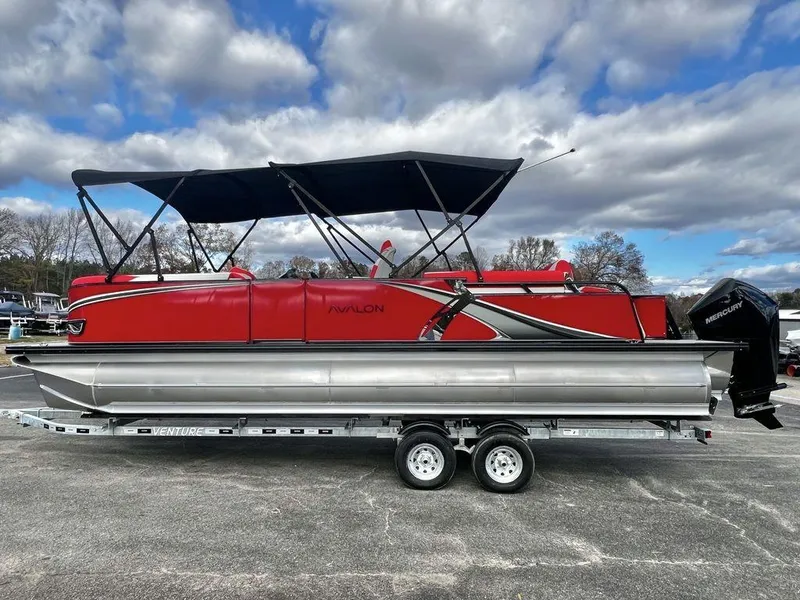 Grab the wheel of the Avalon LSZ from our Signature Collection and hold on tight, because this will be the ride of a lifetime. This affordable yet elegantly stylish, brilliantly constructed pontoon features custom Deco wall design and plush handcrafted furniture. Personalize your LSZ with the level of performance & amenities that fit your lifestyle. Quad Lounge Shift floor plans contain port & starboard benches in both the bow and aft portions of the boat. The aft benches have reversible backrests to sit facing front or back. In addition to the captain's chair there is also a port side chair. This unit consists of all standard features of the 2025 LSZ model plus options of Mooring Cover, Waveglider 25 Triple-Toon Package, Blue Ice Lighting Package, Blackout Package, Ultrafine Vinyl Upgrade, Red Vinyl Accents, (2) Sport High-Back Chairs, Garmin 72SV GPS, Power Assist Steering, Silverwood Flooring, (2) Portable Cup Holders, Lockable Storage In Seat Frame, Under Rubrail Lighting, Lillipad Easy-Step Ladder, Fully Welded HPP Fins w/ Caps, Solid Side Keels, Solid Bottom Keels, Double Bimini (Black), LED Smoked Chrome Docklights, In-Tube Ski Storage Locker, and Saltwater Package! Priced with an industry leading 250HP Mercury 4-Stroke Outboard, this boat is equipped with this motor. Trailer is additional. Motor pictured may or may not be the one that is included with this price. Please refer to ad details or contact us for more information. NEW LAYOUT! Full Specifications Coming Soon!