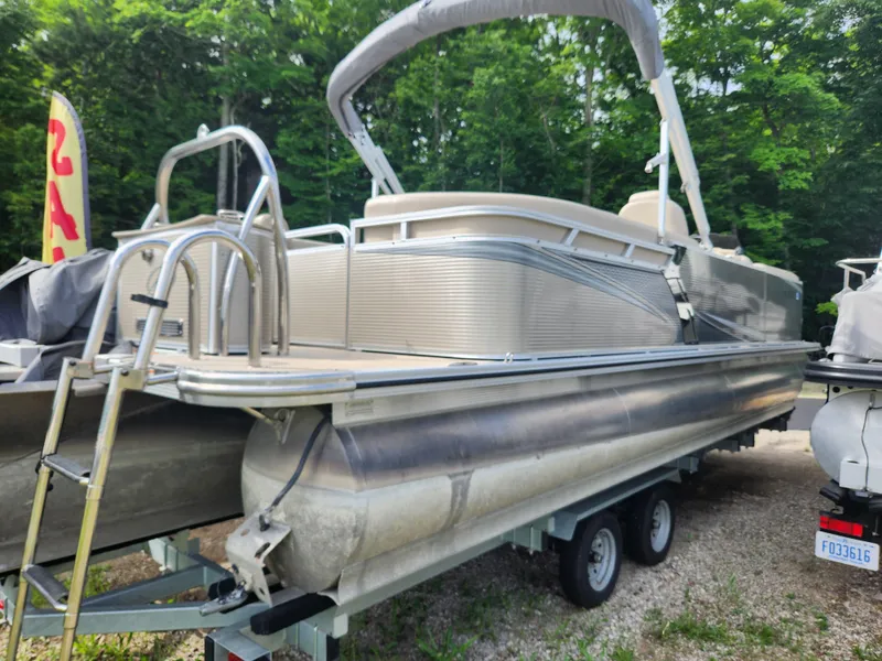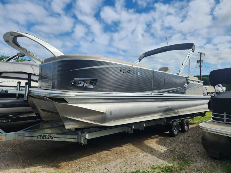 2019 Avalon LSZ 2685 GL, 2019 Avalon LSZ 2685 GL Tritoon Powered by: Mercury Verado 200L Pro FourStroke Trailer: Genesis Tandem Axle Bunk Trailer w/ Surge Brakes Step aboard this well-maintained 2019 Avalon LSZ 2685 GL - a luxury tritoon offering a perfect blend of performance, comfort, and value. With sleek lines, rich vinyl interior, and the reliable power of a Mercury 200HP Verado Pro, this package is ideal for families, cruising, and entertaining. Key Features: Mercury 200L Verado Pro FourStroke Digital throttle and shift Hydraulic steering Powerful and quiet performance Avalon 2685 GL Layout Premium lounge seating with plush tan upholstery Co-captain's chair and adjustable helm seat with armrests Infinity stereo system at the helm with MP3/Bluetooth Stylish helm console with chrome gauges and soft-touch controls Perko battery switch and dual marine batteries installed Oversized rear swim deck with stainless steel boarding ladder Custom rear cooler/bar console with cup holders and locking lid Simulated teak vinyl flooring - slip-resistant and easy to clean Dual batteries with battery switch Full playpen cover and matching Bimini top Genesis Galvanized Tandem Axle Trailer Surge brakes Dual bunk setup Winch stand with ladder 2" ball coupler rated at 7,500 lbs max Trailer Stamp Notes: Coupler: 2" ball Max capacity: 7,500 lbs (3,400 kg) Max trailer GVWR: 13,800 lbs (6,260 kg)