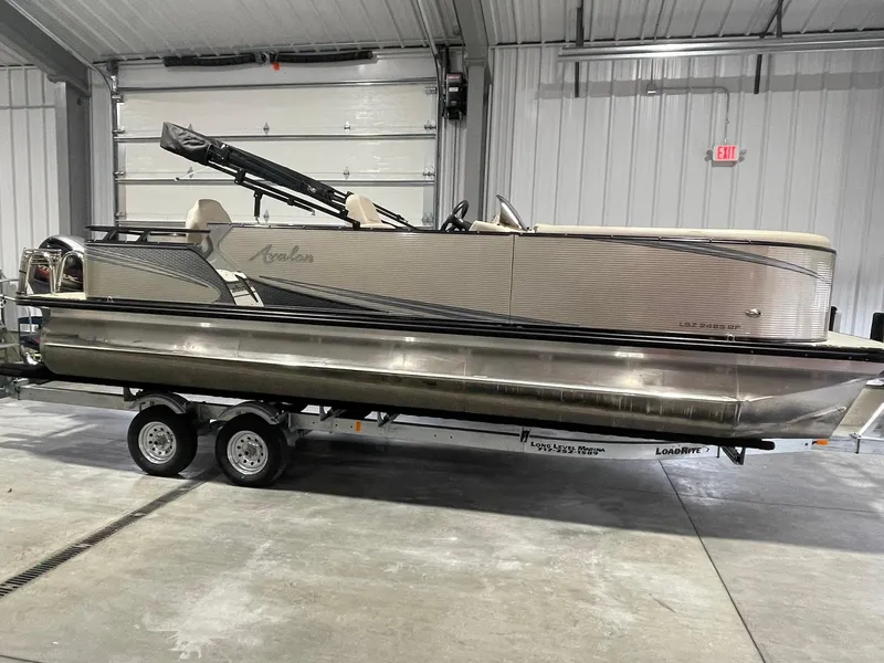 Just Arrived! 2019 Avalon 2485 LSZ Rear Fish Tritoon. It has a Yamaha 115 Vmax engine with only 21 hours on it!! This boat has upgrades like: Blackout Package, Side Keels, Full Mooring Cover, Pull up Cleats, Exterior Nav/Docklights, Blue Ice Lighting Package, 4 Quick Release Fender Holders, Buckskin vinyl and More! It also comes with a BRAND NEW trailer as well! Give us a call today to discuss this boat!
