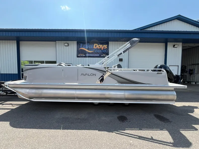 2025 Avalon 2385 LSZ Twin Toon Pontoon powered by a 115 Mercury fourstroke! Power Bimini, Garmin Depth finder, Lilli pad ladder, lifting strakes, blue ice LED lighting, changing room, Dual captain chairs and More!!