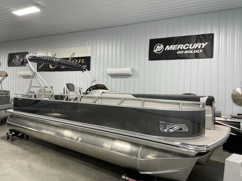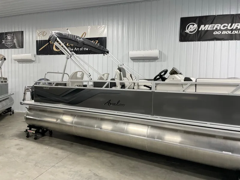 2024 Avalon 23' Venture 85 Rear Fish Platinum Edition Tritoon. This boat is powered with a Yamaha 150LB four stroke outboard. IT is loaded with features like Silver Vinyl with furniture series upgrade, Garmin 73SV Chart Plotter, Upgraded fishing chairs in the rear, Ski Tow Bar, Mood Lighting, Washdown System, Side Protector Keels, In Tube Ski Locker, Large Livewell In place of Sundeck in the rear, 4 Fender holders, Full Mooring cover and More! Price also INCLUDES a dual axle galvanized trailer, coast guard kit, and full commissioning on the water! Give us a call to discuss this boat!