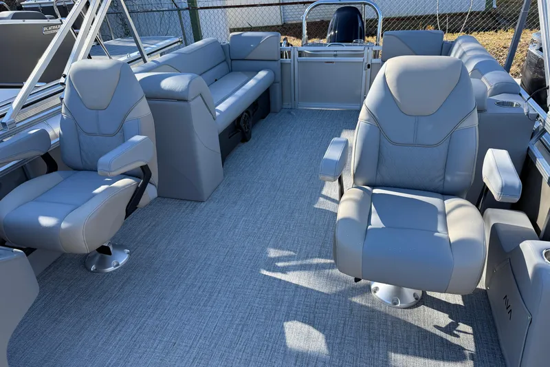 The Quad Lounge is one of our most Popular Lay-outs featuring dual Captain's Chairs, Port and Starboard Benches in the Bow and Stern! This allows for a Full Walk Through Design so you can easily walk down the vessel without sacrificing Seating Capacity!! All Avalon Pontoons come with 10 Year Bow to Stern Warranty with a Lifetime Structural Warranty!!