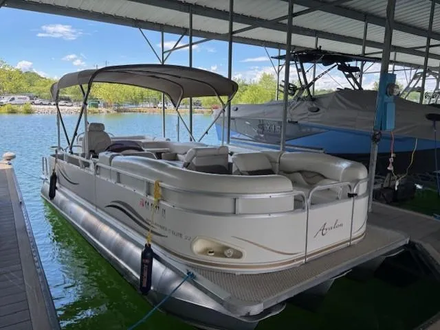 If you are in the market for a 22 -foot tri-toon, do not miss your chance to see this 2007 Avalon Windjammer 22 Elite series. This boat is large enough for the entire family and friends to enjoy a day out on cruising the lake or skiing. This boat has been upgraded to a larger fuel tank and dual batteries with a battery switch. Come see for yourself, how much room there is in this boat and check out the floor plan. The interior of the boat is in great condition and there are plenty of cup holders for everyone. The boat is powered by a Mercury 175 hp with 530 hrs on it. It does not include a trailer, but we do have new trailers for sale as well.