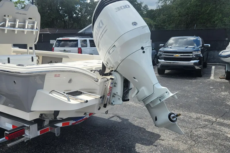 Introducing the stunning 2026 Avenger AV26, a remarkable center console boat that embodies both style and performance. With an overall length of 26 feet, this new vessel is crafted from durable fiberglass, ensuring longevity and resilience on the water. Powered by a robust Suzuki DF300APXW5 outboard engine, delivering an impressive 300 horsepower, the AV26 promises exhilarating speed and agility. The stainless steel 3-blade propeller enhances its performance, making it perfect for both leisurely outings and adventurous excursions. Designed with comfort in mind, the boat accommodates up to 8 passengers, making it ideal for family outings or gatherings with friends. The thoughtful layout and modern features ensure an enjoyable experience on the water. The Avenger AV26 is not just a boat; it's an invitation to explore and create unforgettable memories on the waves.