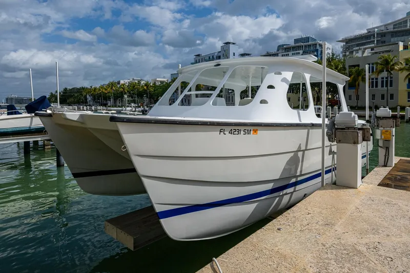 Designed with divers in mind, the boat features ample storage space for dive gear and easy access to the water, ensuring a safe and enjoyable experience. The wide catamaran hull provides added stability, making it perfect for both casual cruising and more active water activities like diving.